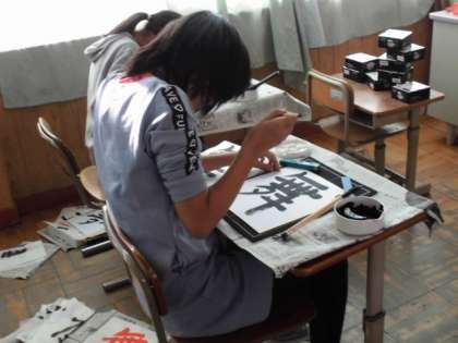9日(土)の書道教室では,自分が選んだ漢字を色紙に書きました。文字の大きさや全体のバランスに気をつけて,丁寧に書きました。清書をするまでに何度も繰り返し練習し,渾身の一枚を書き上げました。次回の書道教室で,今回書き上げた作品を鑑賞します。
