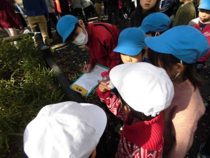 「いろいろな葉っぱやどんぐりを見つけたよ。」