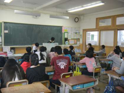 図書委員会による読み聞かせでは,大型絵本をつかって楽しいお話を紹介してくれました。お話クイズもあり,子どもたちは夢中になってお話を聞いていました。