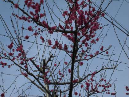 紅梅は,西門を入ってすぐのところにあり,今年は1月下旬から咲き始め,あたりに梅の良い香りが漂っています。