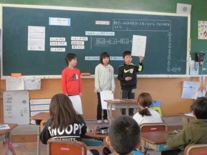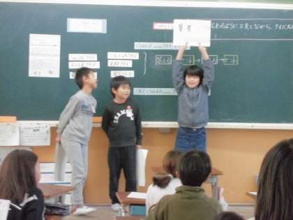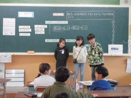 外国語の学習で、クイズを出したり答えたりする活動をしました。