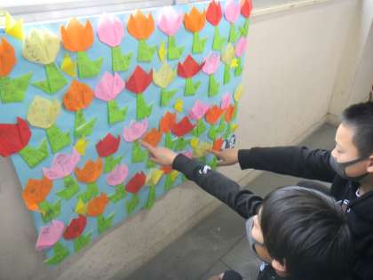 今朝登校したら,6年生の教室前の廊下に,1年生から5年生が作ってくれたお祝いメッセージが飾られていました。6年生を送る会が残念ながらなくなってしまいしょんぼりしていた6年生でしたが,在校生からの心のこもったメッセージをひとつずつ見て,うれしそうにしていました。