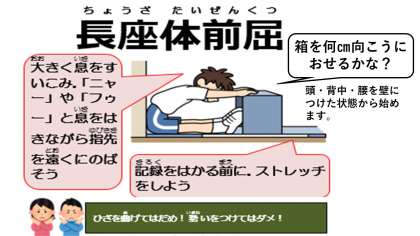 第2弾!今回は「長座体前屈」