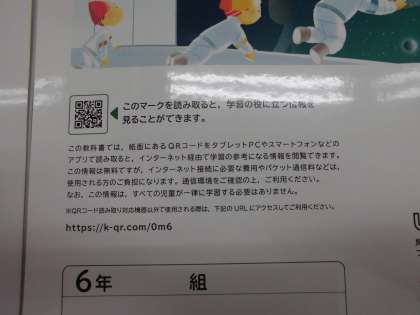 教科書の後ろを見てみると「QRコード」がのっています。「このマークを読み取ると,学習の役に立つ情報を見ることができます」と書いてありますので,興味のある人は一度見てみてもいいかもしれませんね。