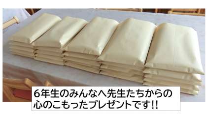 6年生のみなさんこんにちは。今日は金曜日ですね。普段なら金曜日が一番好きという人も多いと思いますが,臨時休校中はどうですか? 「やっぱり金曜日は特別だなあ」と思っている人もいるでしょうか。先生たちは,来週の家庭訪問でみんなに渡すプレゼントをがんばってつくりましたよ。わくわくしながら待っていてくださいね。