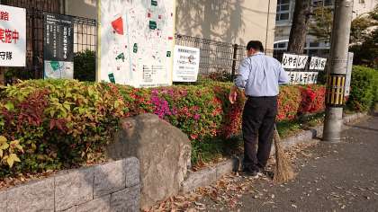 管理用務員さんは,毎日,たくさん散っている桜の花びらや,葉っぱをきれいにはいたり,学校のいろいろなところの修理をしたりしてくださっています。