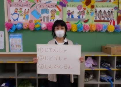 ひまわりがっきゅう たんにんの し〇〇〇せんせいは, なにに のって がっこうに きて いるでしょうか。
