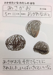 さて,きょう おとどけした しゅくだい なかに,『あさがおの かんさつ かあど』を いれました。