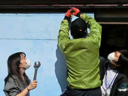 ゴールデンウィークが終わりましたね。みなさん,どんなお休みだったでしょうか。みなさんがお休みの間も,学校では再開に向けて着々と準備が進んでいます。今日は管理用務員さんが体育倉庫の扉を修理してくださいました。重たい扉を一生懸命に動かしながら修理してくださいました。先生たちもお手伝いしました。一日でも早く学校が再開されるといいですね。