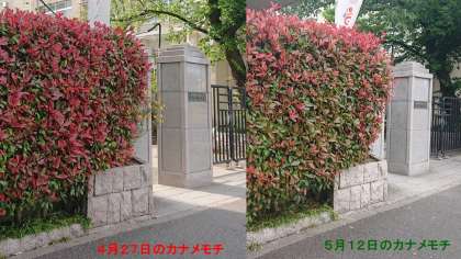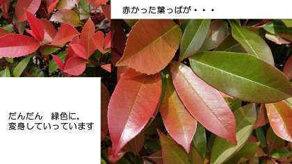 4月27日にカナメモチの若葉が赤色から緑色に変わることをお知らせしましたね。