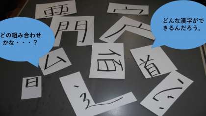 また,写真の漢字の組み合わせを考えて,元の漢字を作っ