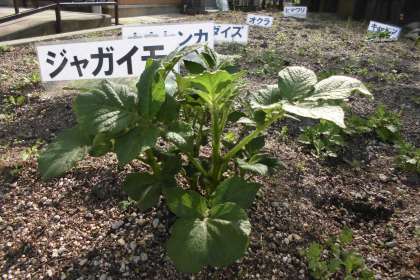 少しずつ成長していて,今,写真の大きさまで育ってきました。みんなが登校するころには,教科書のように青々としておおきな葉を茂らせていることだと思います。