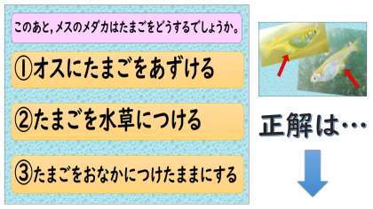 5年生のみなさん,元気に過ごしていますか。先日だしたメダカの問題は,考えてくれたでしょうか。