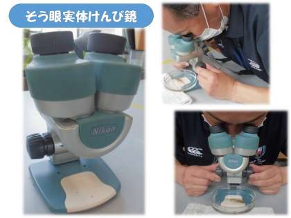 このメダカのたまごですが,直径1mmほどなので,肉眼ではここまで見ることはできません。そこで登場するのが,「そう眼実体けんび鏡」です。学校にあるそう眼実体けんび鏡は教科書に載っているものと少し違いますが,とてもよく見えます。