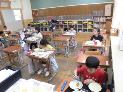 でも,給食室からいい香りが漂い始めると,「おなかすいたー。」「早くたべたい。」という声があがりました。みんなのお腹が鳴る音が聞こえてきそうでした。