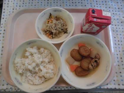 「麦ごはん」「牛乳」「平天とこんにゃくの煮つけ」