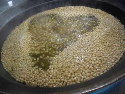 給食室で大豆をゆでているときに,沸騰しているところがハート型になっていました!