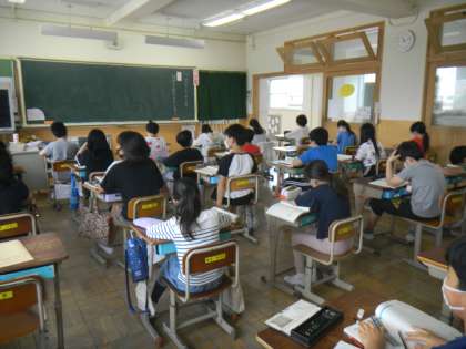 待ちに待った全員集合の日。分散登校は昨日で終わり,今日はたくさんの子どもたちの元気な顔が教室に集まりました。全員集まったほうが授業も楽しいし,給食もさらに美味しく感じます。5年生,再スタートです!!