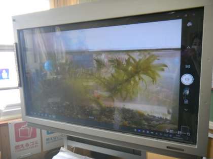 5年生の各教室に,メダカの水槽がやってきました!子どもたちは夢中になって水槽を覗き込んでいます。