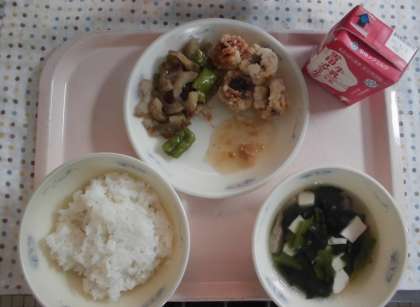 「ごはん」「牛乳」「あげはもの梅だれぞえ」