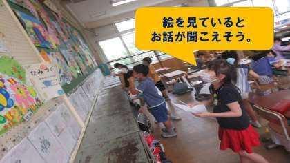 休校中にイメージスケッチをした「ふしぎな たまご」の作品が出来上がりました。今日は,みんなで鑑賞!「かんしょうって何をするの?」「いいところを見つけるけど,いいところってどんなところ?」まずは,鑑賞の仕方をみんなで学びました。自分の作品の工夫をしたところやうまくいったところなどを振り返った後,友だちの作品も見合いっこしました。わずかな時間でしたが,鑑賞カードには,作品のいいところがいっぱい。すてきな時間になりました。