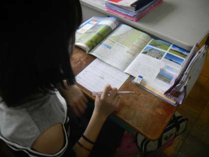 山形県庄内平野は日本有数の米の産地です。まずは庄内平野の写真,土地利用図,気温や降水時間や日照時間を表したグラフを見ながら,庄内平野の特徴を考えました。「田んぼの形がきれいに整っている」「大きな川が流れている」「日照時間が長い」など,これから学習を進めていく中でキーワードになりそうなことをたくさん発見しました。資料を活用する力がついてきています。