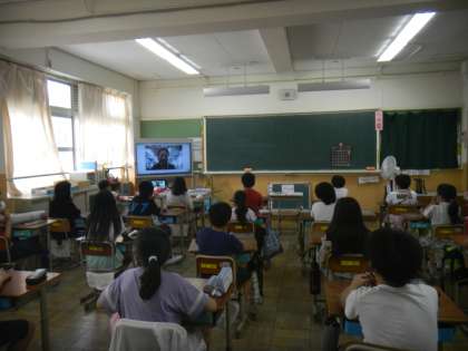 始業式は,1学期の朝会や終業式と同じようにZoomを使って行いました。「5年生のみなさんに聞いてみましょう!」と声をかけられたので,代表の児童がどんな2学期にしたいかを画面を通して全校生に発表することができました。