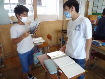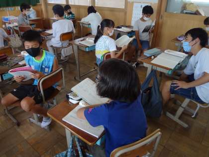国語科「いちばん大事なものは」の学習をしました。これからの生活でどんなものや考え方を大切にしていきたいと考えているか,ということを伝え合いました。以前のように班のメンバーで向かい合っての伝え合いは難しいので,距離を保ちながら考えを伝え合いました。色々な考え方を聞いて、自分の考えに生かしていってほしいです。