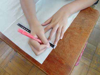 家庭科の学習でミシンを使ってランチョンマットを作成します。安全に気を付けて作成するために,使い方のルールやミシンの各名称などを学習しました。そして,ランチョンマットのつくり方を確認したり,しるしをつけたりしました。出来上がりが楽しみです。