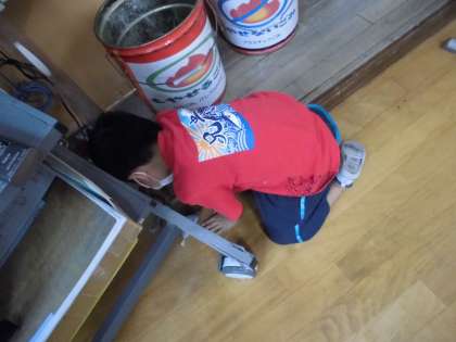 ある子は,ドアの桟を磨くように拭いていました。