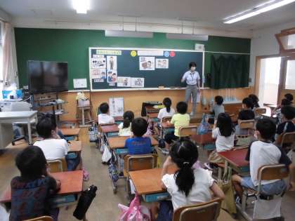 右京警察署の方に来ていただき,非行防止教室をしていただきました。2年生の子どもたちにもわかりやすいように,イラストや紙芝居を使って,して良いことや悪いこと,また,悪いことをしてしまった場合,自分やまわりの人たちがどんな気持ちになってしまうのかを伝えてくださいました。