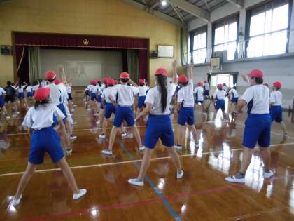 学年でソーラン節の練習をしました。「力強さ」を体で表すのは難しいですが,実際に舟をこいでいるイメージで練習に励みました。少しずつ上手になってきています。