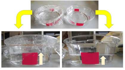 「雨水は空気中にでていったので消えたのでは?」という予想には,カップに水を入れて一つはラップのふたをして,もう一つは何もせず,2,3日様子を見ると…