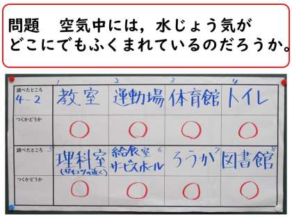 「空気中には,水じょう気がどこにでもふくまれているのだろうか。」というこの単元での最後の問題に取り組みました。