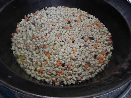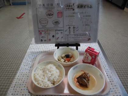 また,「高野豆腐と野菜のたきあわせ」は,けずりぶしと干ししいたけのだしを使い,炊き上げています。優しい味のだしを吸い込んだ,高野豆腐は噛むと「じゅわぁ〜」と口の中においしさが広がります。高野豆腐と野菜を別々の釜で煮込むことで,それぞれにしっかりと味がしみこむように工夫しています。