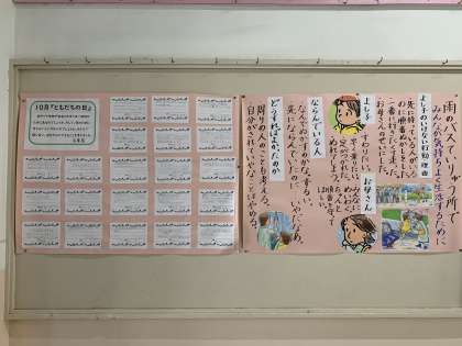 本校では,毎月10日を「ともだちの日」と位置付けています。この日は全ての子どもの人権意識を高めることをねらいとして,毎月のテーマにそって人権学習を行います。