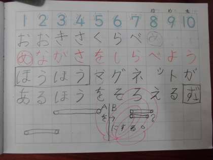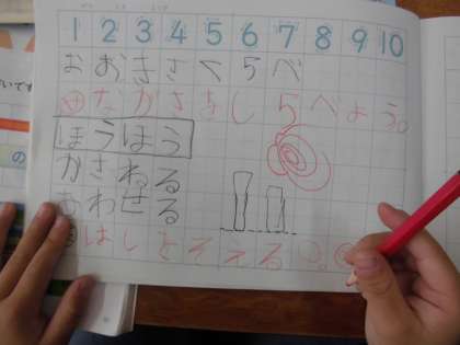 文字も,少しずつ丁寧に早く書けるようになってきました。もうすぐ,マス目の小さいノートに移ります。