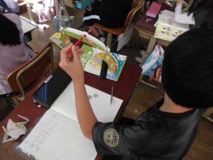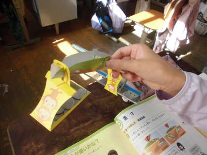 重さの学習では,てんびんを作り,1円玉を使って文房具の重さ調べをしました。