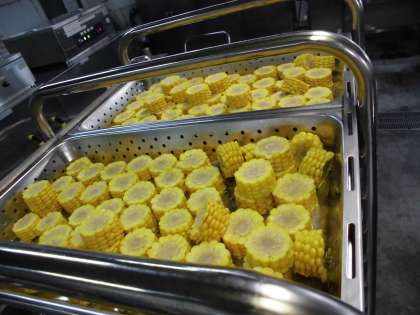 今日の「カットコーン」は,スチコンで調理しました。