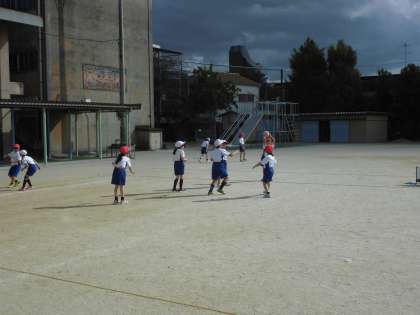体育の学習では,エンドボールをしました。どのチームもパスを繋げてゴールを目指して頑張る姿がありました。練習を重ねるたびに作戦やパスの工夫を考える様子が見られました。チームのみんなと一緒に頑張る姿が素敵でした。