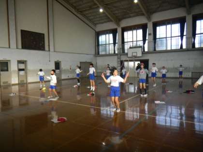 授業の初めは体操服の上からトレーナーを着ていた子たちが多かったのですが,跳んでいるうちにほとんどの子たちが「暑い!」とトレーナーを脱いでいました。がんばった証拠ですね。寒い日が続きますが,体力をつけ,健康に過ごしてほしいと思います。