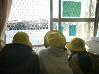 今日はとても寒い1日で,朝はうっすらと雪が積もっていました。そんな運動場を眺めていると子どもたちが,「先生!運動場に何か書いてある!!」と,言い出しました。うっすら積もった雪の中に,「おはよう」と書いてあったのです。「本館にいる高学年しか気付けないメッセージだね。」と,とてもうれしそうでした。