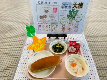 そして,調理員さんからのクリスマスプレゼント「ラッキーにんじん」がクリームシチューに入っていました。
