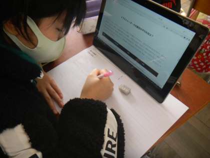 総合では,「働くことはすばらしいこと」の学習に取り組んでいます。これまでは,西京極の町にはどんな仕事をしている人がいるかを調べたり,いろいろな人のインタビュー記事からどんな気持ちで仕事に取り組んでいるのかを考えたりしてきました。今はパソコンや本を使って,自分が将来なりたい職業や興味のある職業について調べ学習を行っています。「こんな資格がいるんだ」「こんな勉強が必要なんだ」など,驚くことが多いようです。