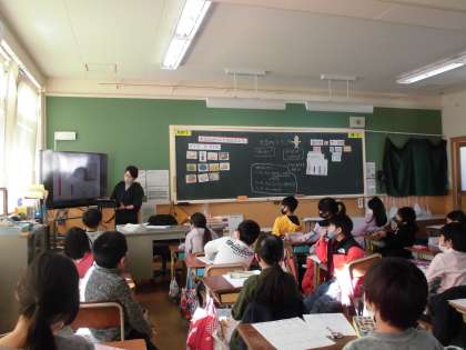 食の学習では,栄養教諭の先生と一緒に大豆の魅力について考えました。はじめに大豆がどんなものに姿を変えているのか,給食カレンダーを使って考えました。その中で大豆が様々な食材に変わっているだけではなく,栄養をたくさん含んでいることを知りました。子どもたちは,自分たちが思っていたよりもたくさn栄養が含まれていたことを知り,驚く姿が多く見られました。ぜひ,お家でも子どもたちに,今回学んだことについて聞いて頂けたらと思います。