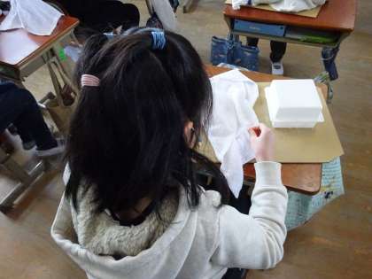 今回の学習では,液体粘土にひたした布で形を作って固め,素敵な世界を立体に表していきます。