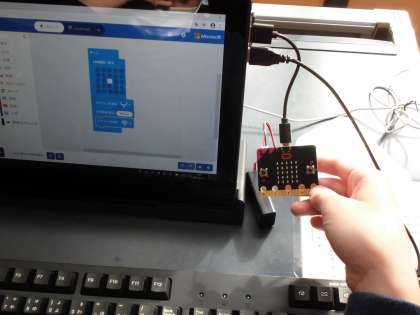 6年生の理科では,コンピュータにプログラミングをすることによって,自分が意図した動きを人感センサーに反映することができることを体験しました。