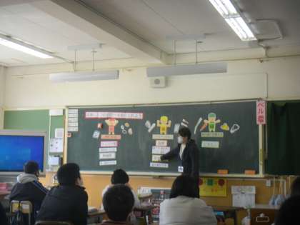 栄養教諭の先生と食の学習に取り組みました。今回は「食事に5つのパワーを取り入れよう」ということで,家庭の学習で勉強した五大栄養素を思い出し,昨日の夜ごはんや今日の朝ごはんの献立をもとに,足りない栄養素は何かを考え,どのような献立を追加すればバランスのよい食事になるかを考えました。「朝ごはんは栄養が偏り気味だな」「たんぱく質が足りないから,卵焼きを追加しよう」など,自分の食事をふりかえり,新しい献立を考えていました。