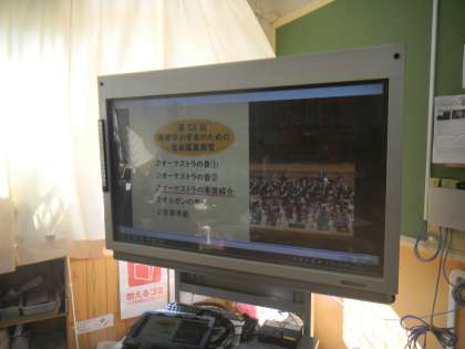 今年度は新型コロナウイルス感染拡大のため音楽鑑賞教室が中止になってしまいましたが,京都市交響楽団の方たちの演奏が収録されたDVDが学校に届いたので,音楽の学習の時間に鑑賞することにしました。音だけではなく実際に演奏している姿を見ることができるので,子どもたちは夢中になって目と耳で楽しんでいました。また,オーケストラの楽器紹介のコーナーでは学校の音楽室にはない楽器がたくさん登場したので,とても喜んでいました。