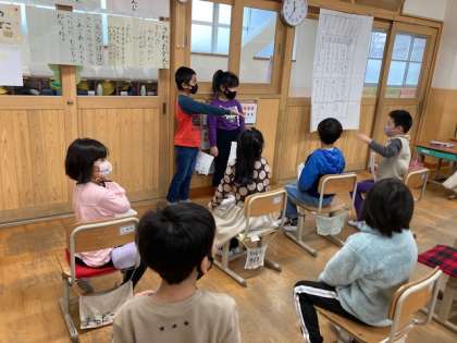 クイズ大会では,少し緊張しながらも,二人で協力し合って問題を出す姿や,積極的に質問する姿が見られました。